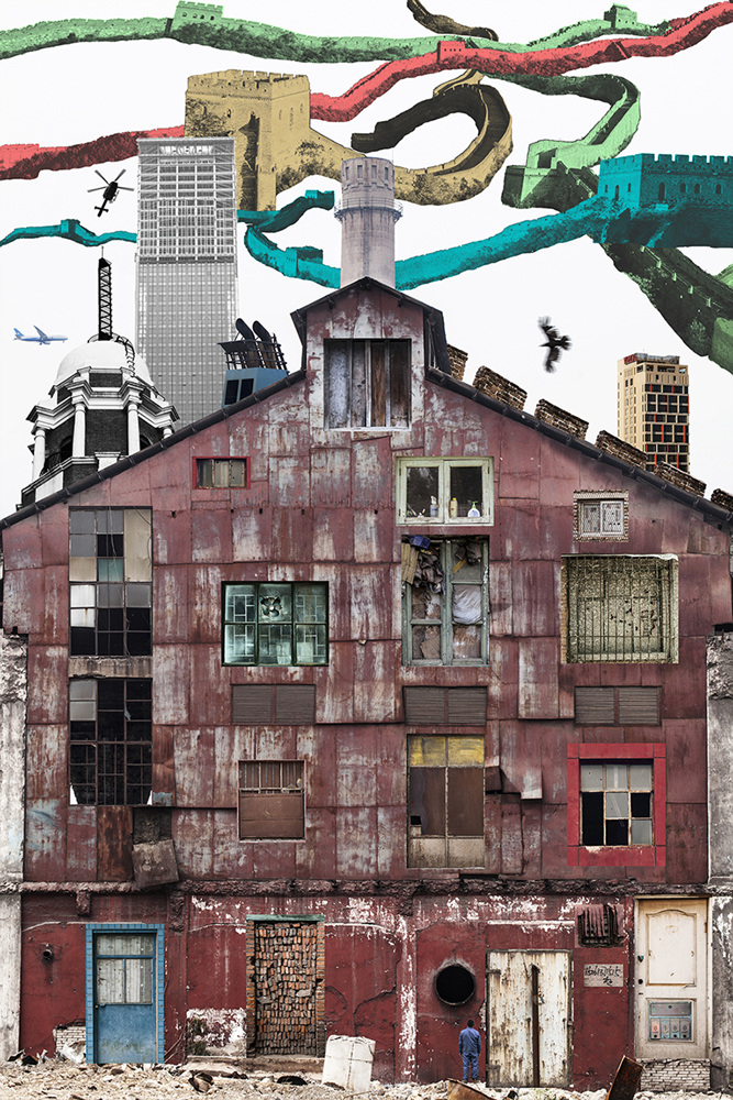 Take one of the dilapidated building on a tree works, itself has a kind of irony, the old building was torn down at the same time, a strong life tree will be torn down, like a history book LianZuo punishment. Each window gives a different brand of new colour. It seems that every window has a life that meets its color. Every window has its own life.
