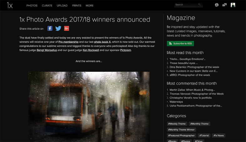 The famous 1x.com announced their 1x Photo Awards for the year of 2017/18. These photos are judged by famous photographers Bengt Wanselius and Ken Rockwell. This contest is sponsored by Pictorem. All the winners will receive one year of Pro membership of 1x and their last photo book X.